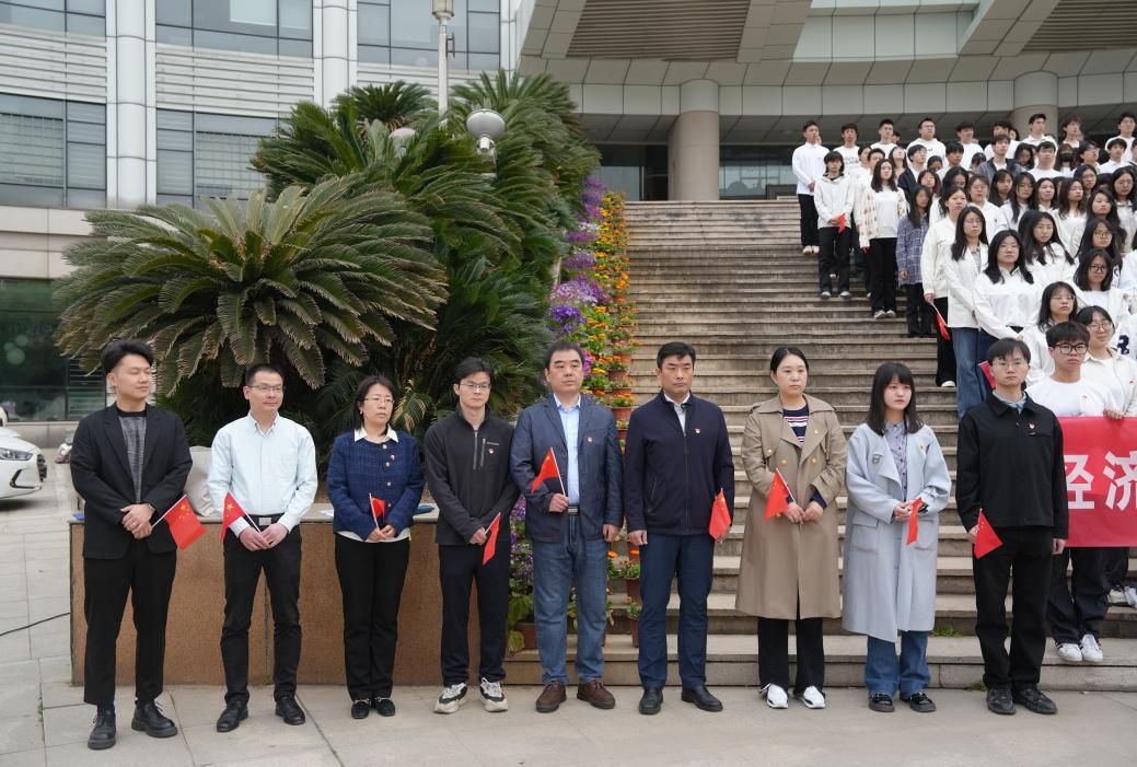 新闻网讯(学生通讯员 胡漪 陈思婕)旗卷风云八秩路,青春铸剑启新程。为筑牢青年信仰根基,淬炼新时代先锋力量,2025年4月7日上午7时,经济学院“赤子丹心护旗扬,青春志远谱新章”升旗仪式于南湖校区中原楼前隆重举行。校党委学生工作部副部长范献龙,经济学院党委书记刘刚,副院长张鸿武、宋丽智,党委副书记俞凡及学生工作办公室的老师们出席仪式,经济学院本科生第一、第二、第三党支部全体正式党员、预备党员、发展对象、积极分子到场参加。
