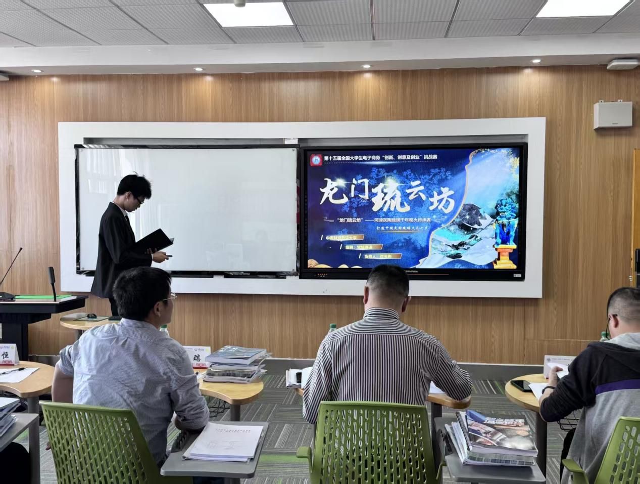 此次中级赛采取线下答辩的形式,由从书面评审中脱颖而出的24支参赛团队在608与612教室依次进行路演答辩。在比赛过程中,各团队依照赛前抽签顺序依次向嘉宾老师介绍各自队伍的创业项目,阐述项目的创新点、盈利模式与未来发展期望等,向评委展现学子的创业风采。