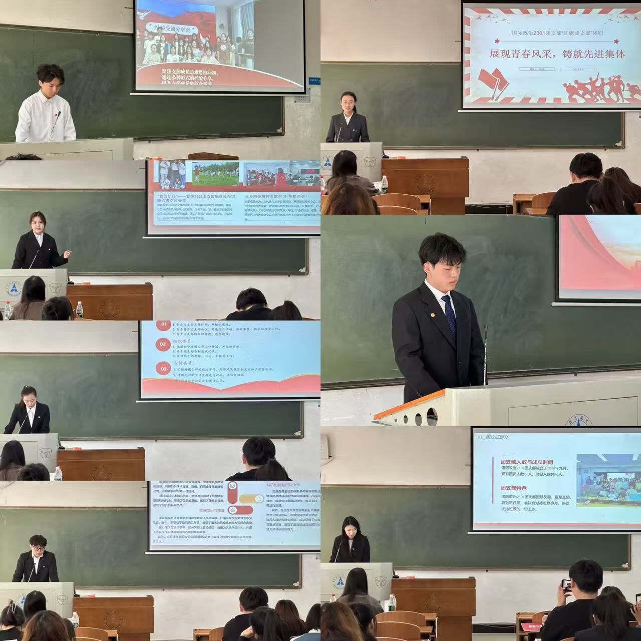 随后,开展团支书述职大会。未参与评选“红旗团支部”的五个团支部依次上台展示,围绕思想建设、组织建设、宣传建设、文化建设、支部荣誉等方面介绍本支部建设情况,展现了各支部积极进取的昂扬风貌。