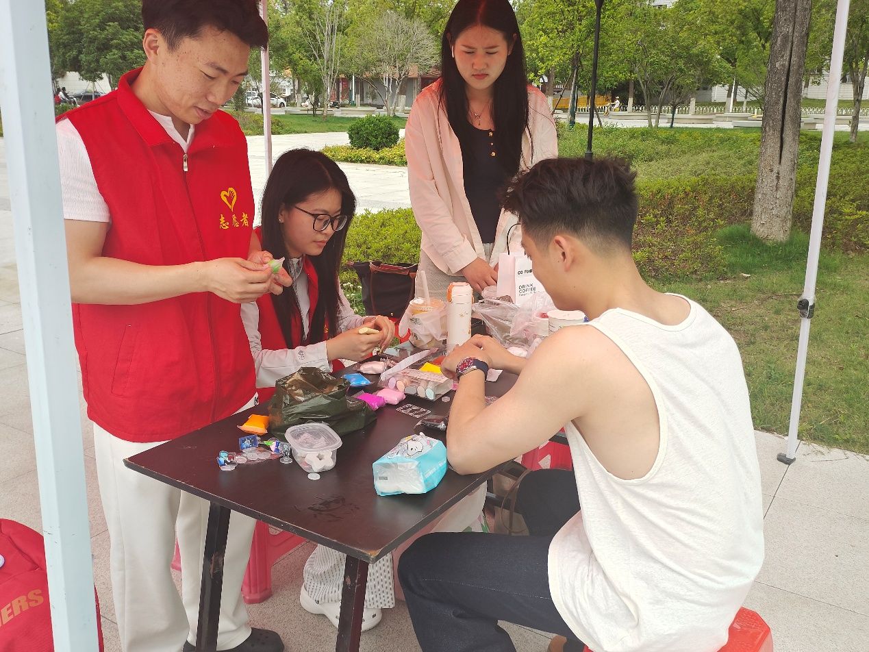 活动当日,志愿者们早早来到活动现场,怀着热忱与期待,积极投入到场地布置、物资准备等前期工作中。在首义校区的首义会堂前广场和南湖校区的五羊广场,志愿者们精心布置了活动场地,摆放好帐篷、桌椅等物资,为活动的顺利开展做好了充分准备。