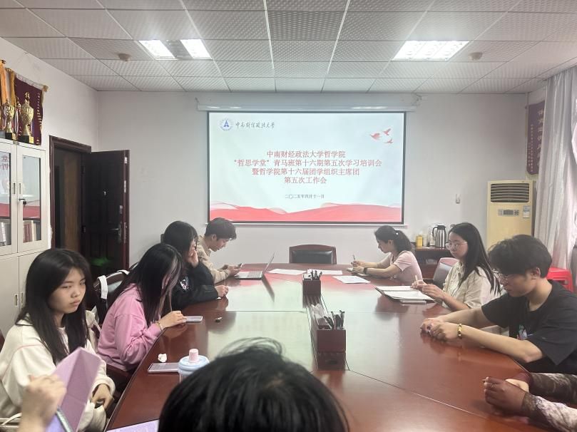 新闻网讯(学生通讯员 郑中秋 摄影 窦晨纹)4月11日16:00,“哲思学堂”青马班第十六期第五次学习培训会暨哲学院第十六届团学组织主席团第五次工作会在文沛楼319召开。院团委书记陈意萍老师及主席团全体成员参与了本次会议。会议由院学生会主席李璋晗主持。