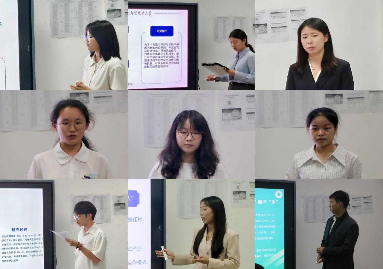 答辩依序进行,各小组研究课题多元,涵盖数字经济、知识产权等方面。他们围绕课题,从研究背景、思路、创新点到结论建议进行全方位呈现,展现出扎实专业能力。