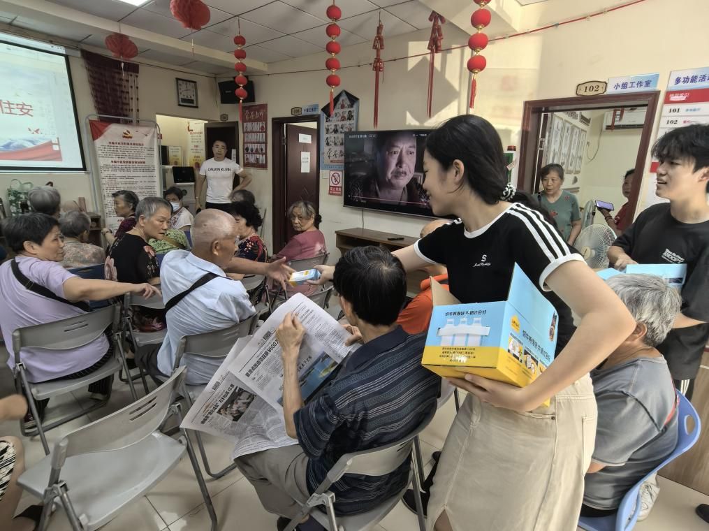 为了增强互动性,实践队特别设置了问答环节,鼓励老人们积极提问,分享自己在一键报警装置的所见所闻。其中一位老人分享道“见过,但是没按过。”现场气氛热烈,老人们纷纷表示受益匪浅。