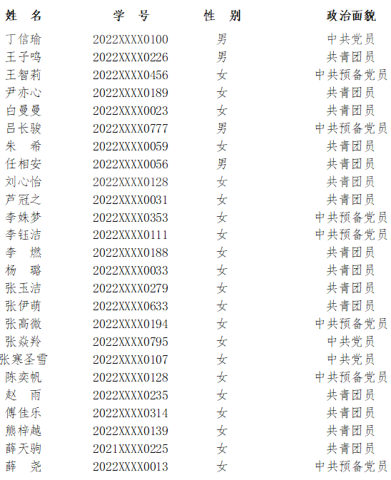 经公开招募、自愿报名、学院推荐、资格审查、综合考核等程序,初步遴选丁信瑜等25名同学为我校第28届研究生支教团预接收人员,陈玲等5名同学为预接收替补人员,具体名单如下: