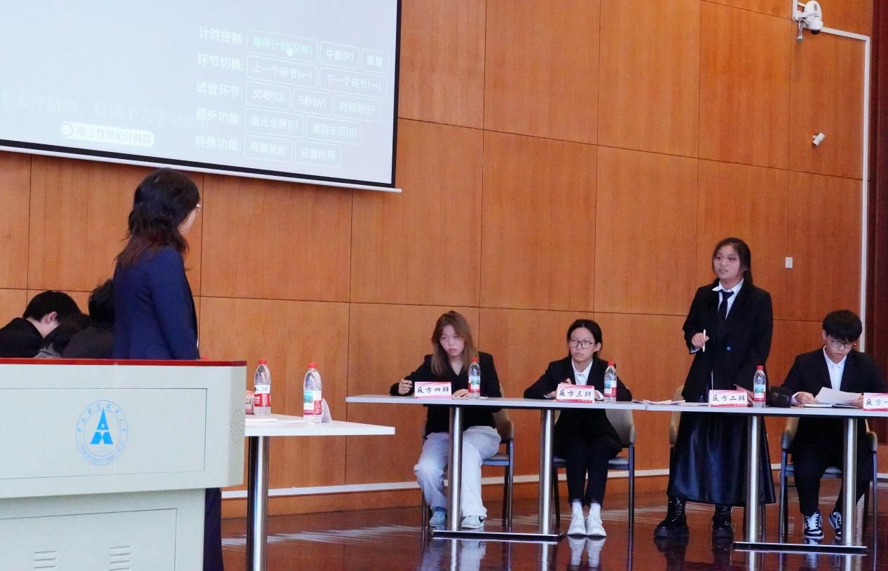 在紧张刺激的自由辩论环节,双方有问有答,有来有回,各位辩手“各显神通”。有字字珠玑的犀利问答,也有温柔从容的理智交锋。双方不分伯仲,充分展现了金融学子的非凡风采。