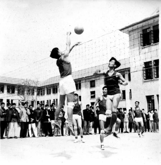 1948年,中原大学在河南宝丰成立之初,尽管条件艰苦,师生仍然自发开展体育运动。有些爱好球类的学员,自己设计,因陋就简地弄了一块练球场地,在两棵树之间,横栏一根绳子,就可以打排球;横架一根铁棒,就是学员们锻炼身体的“单杠”。学校迁开封后,因借住了河南大学校舍,原有较正规的体育活动场地和设备,为学员开展体育锻炼提供了有利的条件。