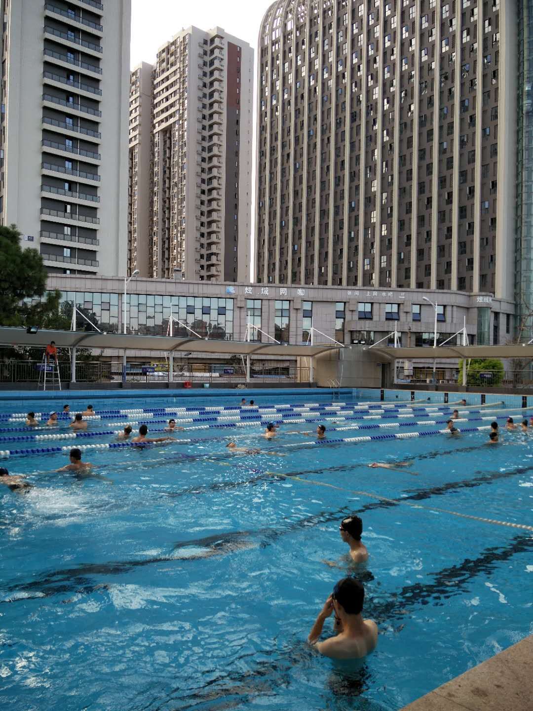 游泳池总用地面积3000平方米,一楼是男女更衣间,二楼为标准50*25室外露天泳池,一般开放时间为每年5月至9月。健身房设在新体育中心,设有多种标准健身锻炼器材,凭校内一卡通免费对校内师生开放。