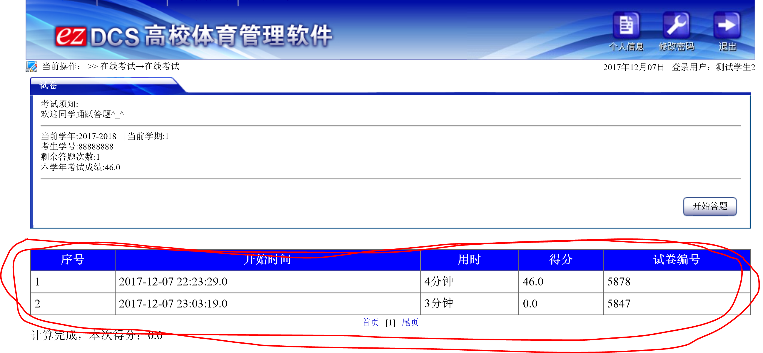 答题结束后,必须点击“交卷”,系统才会自动生成本次考试所得分数。生成分数后方可关闭系统,此次考试结束。
