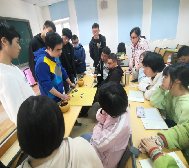 颁奖仪式过后,陈子煜师兄和唐凌宇师兄给师弟师妹讲棋,这让师弟师妹对象棋和五子棋有了进一步的了解,两位师兄还给师弟师妹进行一对多的指导,这更好的增进了彼此之间的了解,加强了新旧棋协会员之间的相互交流,欢声笑语自然不断。