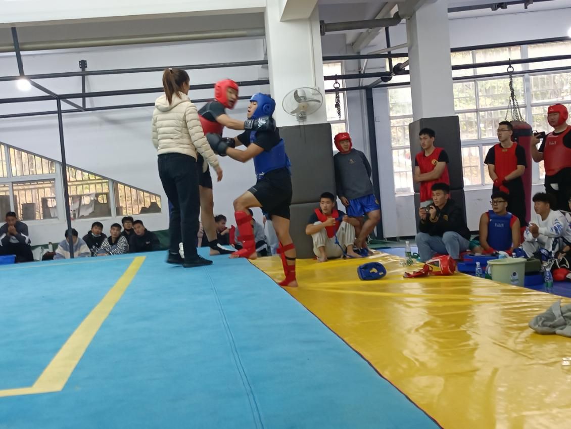 校武术散打队的陈志喜、许永两位教练与来自湖北省包括武汉大学、华中科技大学、华中师范大学、华中农业大学、汉口学院、武汉华夏理工学院、湖北水利水电职业技术学院等在内的11所高校武术散打队的教练们在我校南湖校区体育中心武术散打馆会晤。80余名运动员汇聚于此,进行了男子从56kg至100+kg、女子从48kg至70kg不同重量级的较量,我校男子组有王伟龙(56kg)、陈杰(60kg)、肖同峰(64kg)、邵琦(67kg)、周靖康(68kg)、黄振怡(70kg)、钟锐(72kg)、邹家乐(74kg)、肖润中(76kg)、徐浩天(85kg)、王彦翔(100+kg)等同学,女子组有覃子娟(48kg)、刘铭瑄(60kg)、武思涵(70kg)等同学出赛。