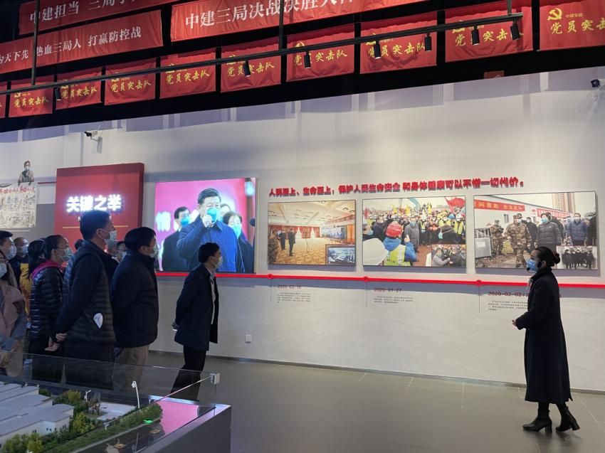 在讲解员的带领下,党员同志们先后参观古代建筑展厅、荆楚建筑展厅和现代建筑展厅,并重点观看了“火神山”“雷神山”医院建设纪实展。“两山”医院建设纪实展览以“平凡英雄创造中国速度”为主题,再现了武汉“英雄的城市”与“英雄的人民”同心战疫、共克时艰的恢宏场景,诠释了中国建筑企业的担当和中国建筑工人的“火雷精神”。