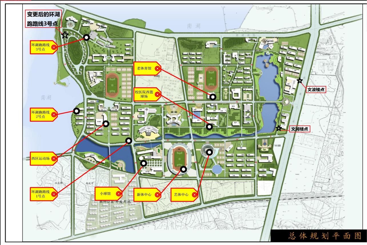 1.南湖校区“新体中心”打卡点两个(具体点位请看附图),A B两点都可作为起点,两点间环距200米,男生女生均为2000米记1次有效。学生环跑道进行打卡锻炼,打卡11次(A-B-A-B-A-B-A-B-A-B-A或B-A-B-A-B-A-B-A-B-A-B)即可跑完2000米全程,记一次锻炼次数。速度要求不低于1.5米/秒,不高于7米/秒;每天最多锻炼1次;