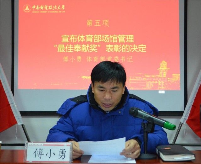 (通讯员 欧阳昕 姚亚杰 摄影 李泳)为表彰先进、树立典型,2月12日上午,体育部在艺体中心组织召开场馆中心2022年度总结表彰大会暨2023年工作部署动员大会。体育部党委书记傅小勇、主任肖杰出席会议,场馆中心主任周晓东主持会议,场馆中心全体工作人员参加。
