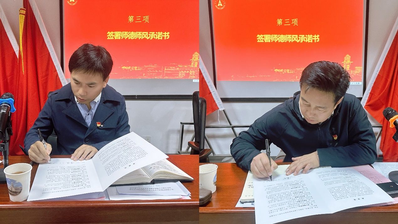 通过学习,大家一致认为,要在工作实践中进一步提升思想政治素质和职业道德水平,以正确的政治方向和价值导向引领自身师德素养和业务能力全面提升,用实际行动当好学生“引路人”,并在会后集体签署了师德师风承诺书。