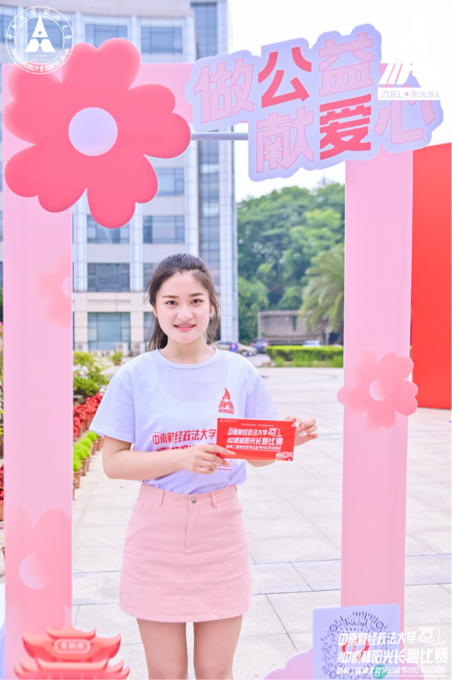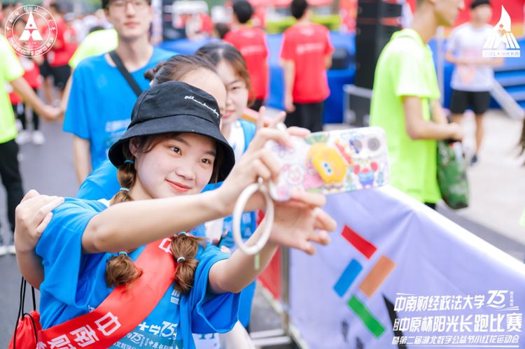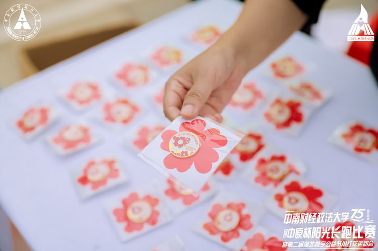 在中原楼前、新体中心西北门的公益打卡点,完赛选手纷纷前往打卡合影、参与公益,一枚枚小红花勋章戴到胸前,为慈善事业发展助力!