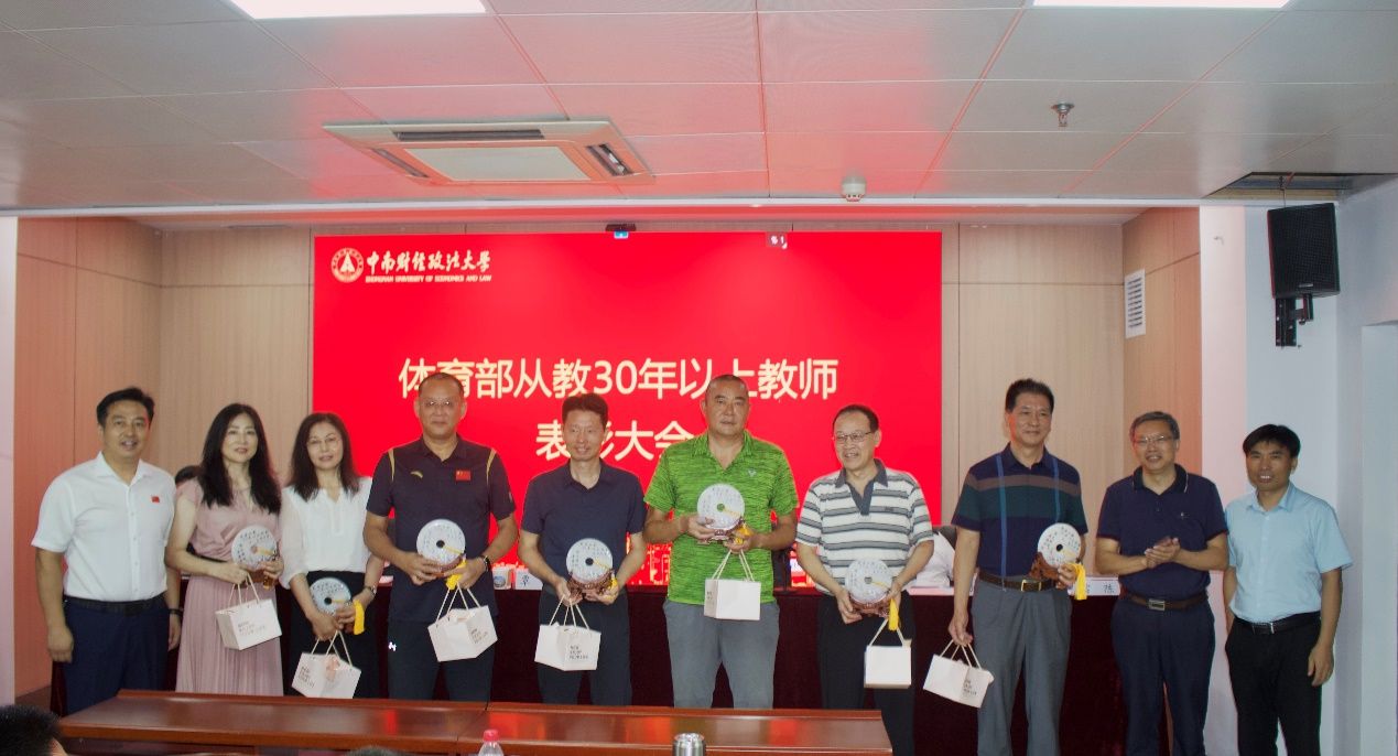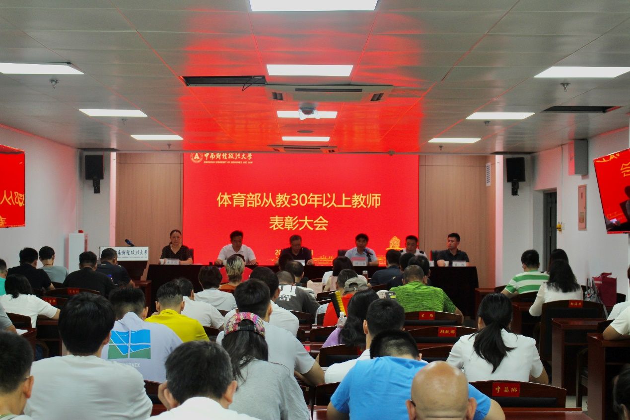 (通讯员 姚亚杰 吴优 王有琦 摄影 易宇豪)为进一步激励广大一线教师忠诚党的教育事业,增强立德树人的使命感、责任感和荣誉感,表彰为我校体育事业发展做出积极贡献的教师,在第 39个教师节来临之际,体育部于9月7日上午在艺体中心A113大会议室举行从教30年教师表彰大会。校党委常委、副校长覃红出席会议,会议由体育部党委书记傅小勇主持,体育部全体教职工参加会议。