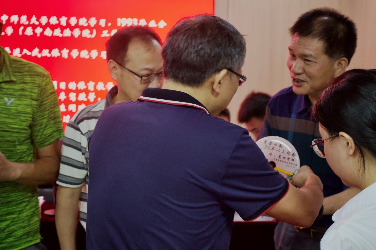 覃红、傅小勇、肖杰向八位教师颁发荣誉证书,献上精美的纪念品。