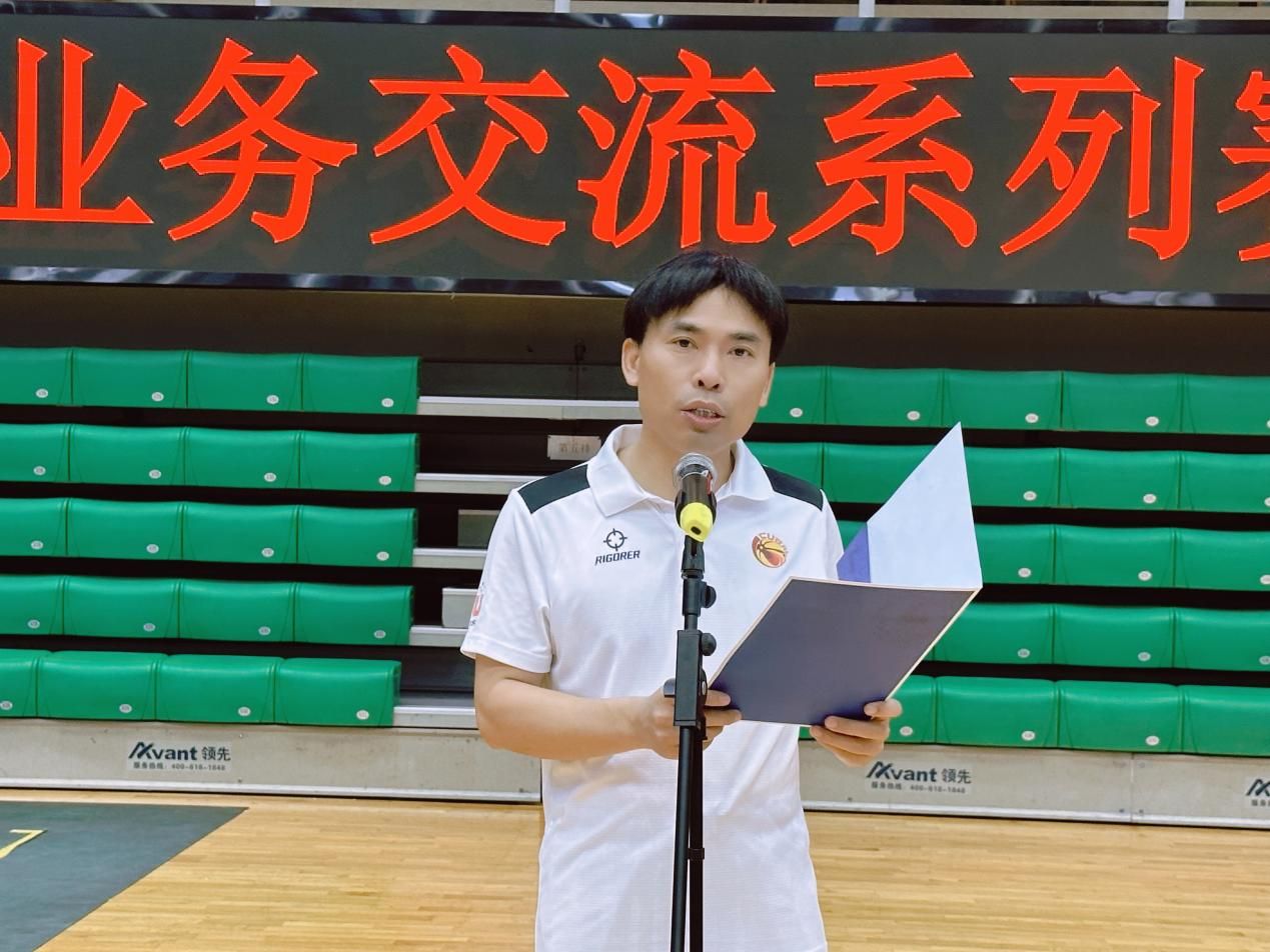 吴凡宣布体育部教职工业务交流系列赛启动,气排球比赛正式开始。
