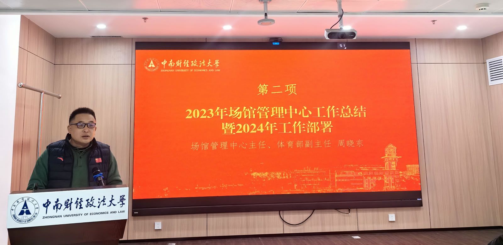 周晓东作2023年场馆管理工作总结,并详细安排部署2024年工作。他提到,目前场馆管理中心在规章制度建设、管理骨干培养、大型活动保障以及运营管理方面取得了一系列进展。接下来,将进一步完善人员管理与队伍激励机制,充分调动大家的工作积极性、主动性,增强团队活力,持续提升学校体育场管管理水平及服务质量。