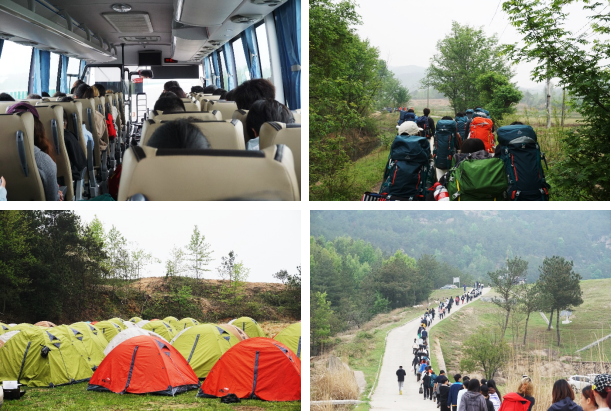 在前期课堂上,同学们系统学习了户外运动专业理论知识和常用技能,并经历多次实操,对活动过程中的注意事项也有了进一步了解。大家都信心十足、热情高涨。13日早上6点40分,同学们准时集合完毕,携带好提前发放的登山包、帐篷、睡袋以及炊具等露营物资,一同乘坐大巴车前往实践基地。