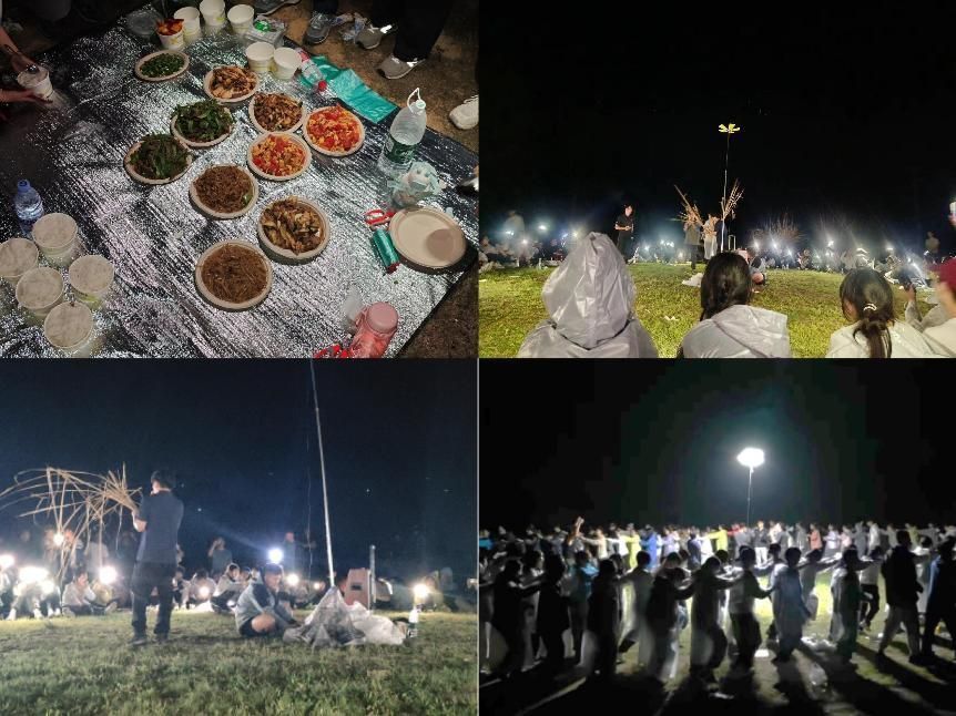 傍晚时分,同学们开始在营地搭灶、生火、备菜、做饭,周围洋溢着欢乐祥和的氛围。围的“炉”是用大石块临时搭建的灶台,造的“火”是用镁棒和柴火点燃的微光。集体合作生火做饭的过程中不仅提高了自己的野外生存能力,也增进了同学间友谊,收获了幸福和满足。晚饭后,“灯光”晚会正式开始。月亮高挂,繁星作伴,大家围坐一团,表演精心准备的歌曲、舞蹈、魔术等节目,集体做趣味游戏,共同分享体验实践心得。学中有玩,玩中有乐,歌声、笑声、嬉戏声穿透黑夜,传遍整片山林。