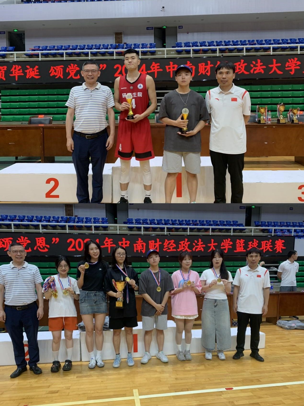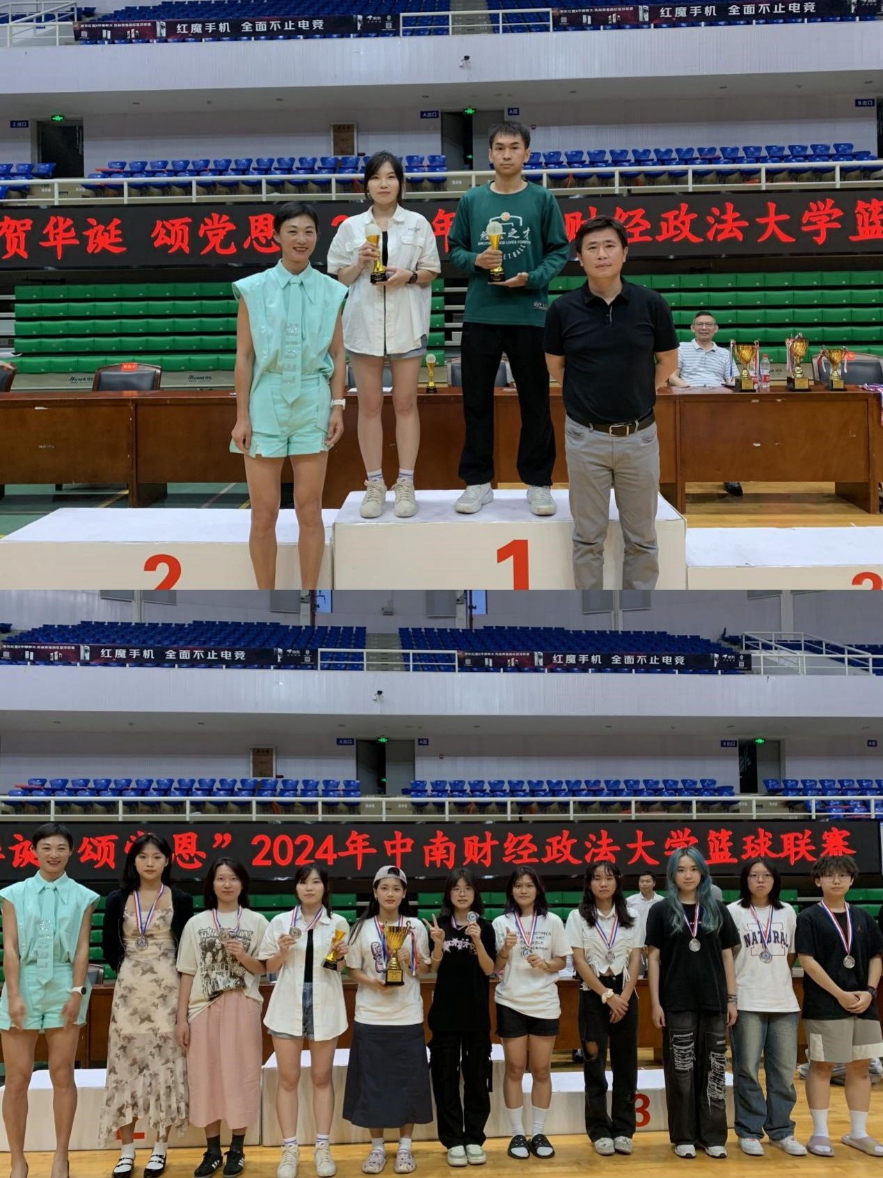 经过比拼,研究生院、工商管理学院和刑事司法学院分获男子甲组前三名;研究生院、工商管理学院、统计与数学学院分获女子甲组前三名;统计与数学学院、国际教育学院分获男子乙组前两名;研究生哲学联队、公管新闻联队分获女子乙组前两名。颁奖嘉宾依次为获奖队伍、“MVP”球员及优秀裁判员颁发奖杯、奖牌与奖品。这些荣誉是对参赛运动员卓越表现的肯定,也是对他们背后付出辛勤汗水的嘉奖。