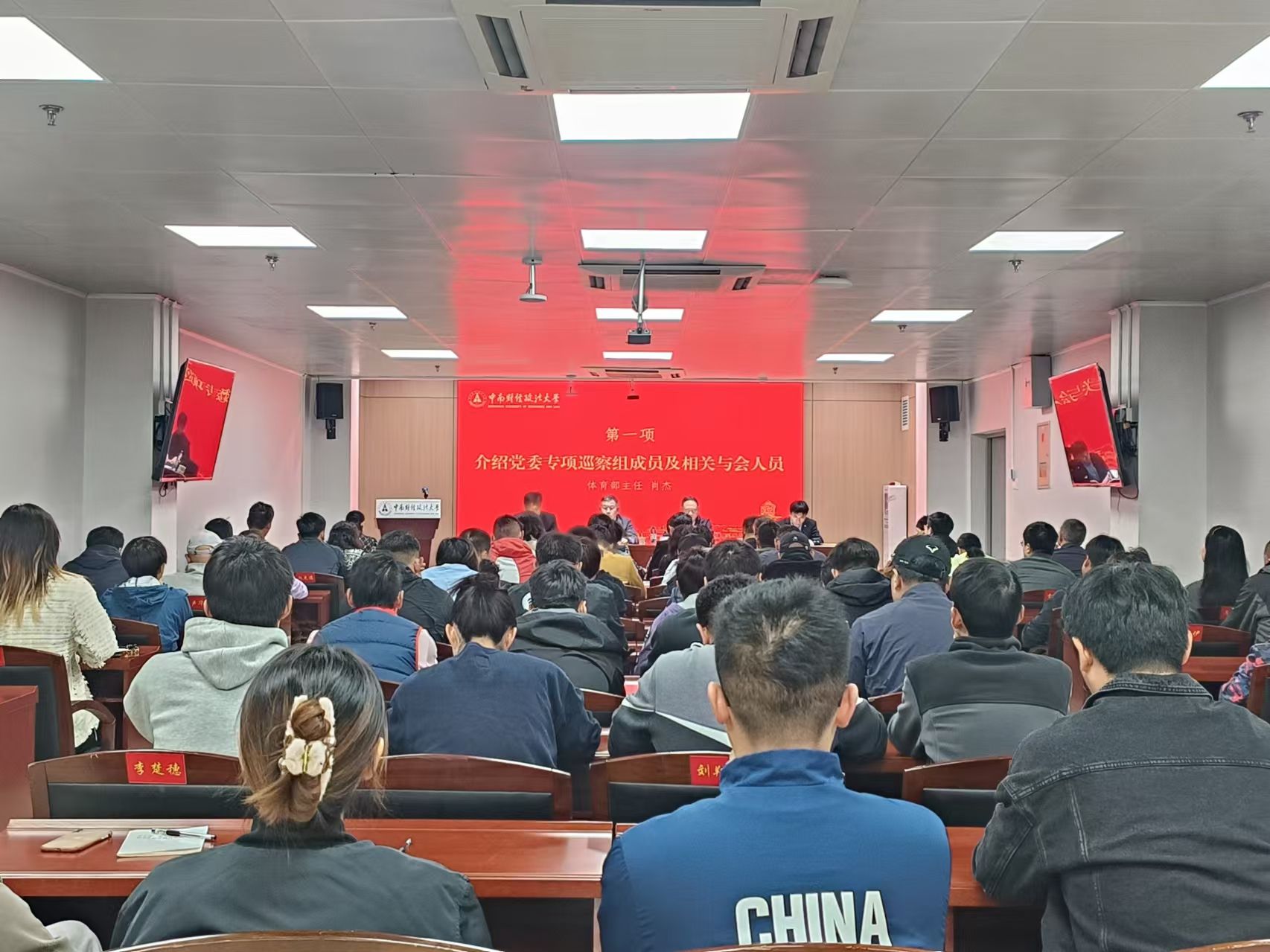 张文剑传达学校党委2024年第二批巡察动员部署会会议精神,并对巡察工作提出明确要求。第一,统一思想、提高认识,切实增强抓好专项巡察工作的责任感和使命感。作为一所具有红色基因、扎根中国大地的革命大学,要深刻理解习近平总书记关于师德师风重要论述,将师德师风要求贯穿到为党育人、为国育才全过程,将师德师风建设放在“教育强国,中南大何为”的大局中去理解和推进,不断增强政治思想理论情感认同。第二,突出重点、把握关键,切实提高专项巡察的针对性和穿透力。巡察组要切实遵循巡察工作规律,充分发挥专项巡察小切口、大纵深、效果好的优势;要将问题导向和目标导向贯穿巡察工作始终,找准问题,提出有针对的对策建议;要注意工作纪律和要求,严守职责边界,广泛听取师生和一线工作人员的看法意见,对情况进行“精准画像”。第三,强化整改、落实责任,确保巡察取得扎实成效。体育部党委要扛牢整改的政治责任,敢于刀刃向内、动真碰硬。抓好巡察期间的立行立改,边巡边改,力争“治未病更主动,治已病不停歇”。要以本次巡察为新起点,努力打造一支有理想信念、有道德情操、有扎实学问、有仁爱之心的教师队伍,为写好体育强国、健康中南的时代答卷贡献力量。