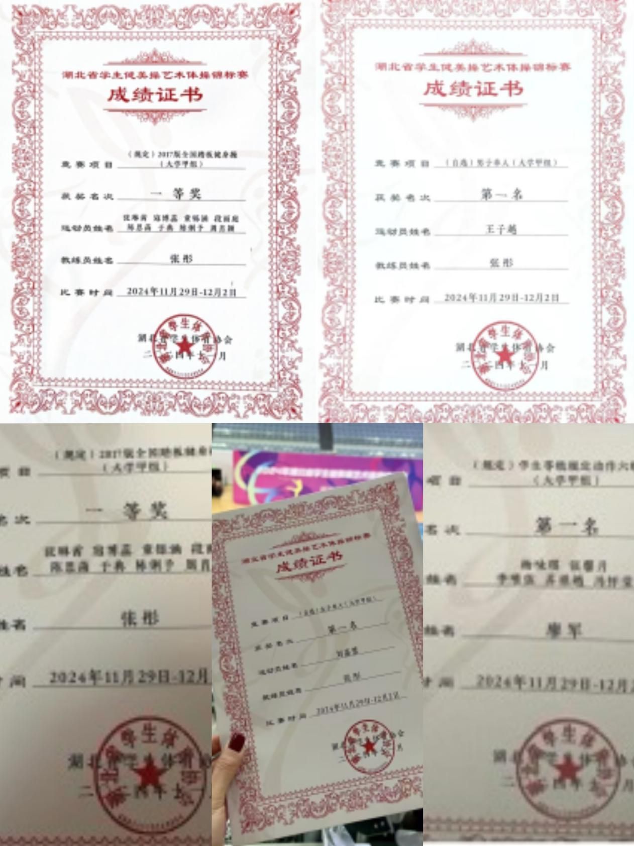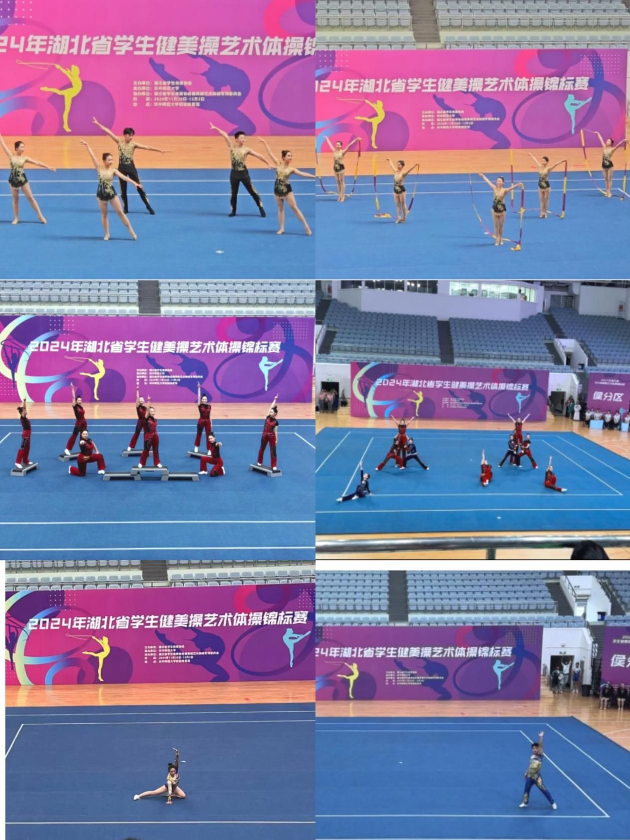 (通讯员 张彤 廖军 学生通讯员 周肖颖)2024年11月30日,湖北省学生健美操艺术体操锦标赛大学组赛事在华中师范大学隆重举行。本次赛事汇聚了来自全省36所高校的近1000名运动员,他们在赛场上共同演绎了力量与优雅的完美融合。在激烈的竞争中,我校艺术体操队与健美操队表现出色,夺得5金1银,展现了我校学子在体育竞技领域的强大实力和卓越风采。
