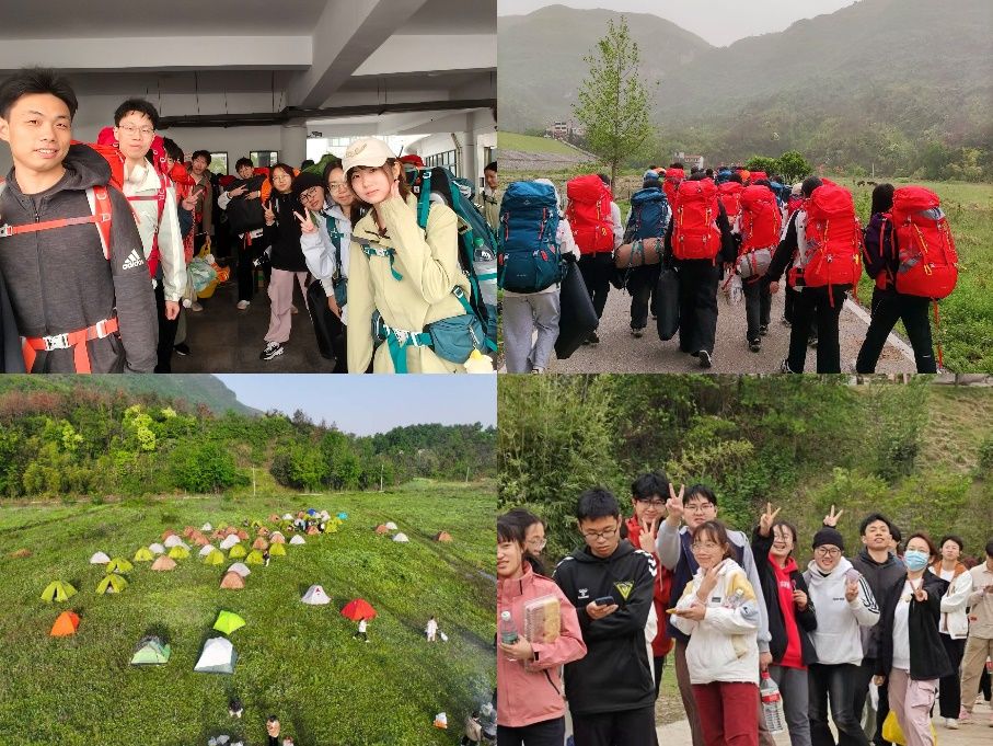 在前期课程中,学生已系统学习了户外背包装填、帐篷搭建与拆除、野外生火等户外技能,并在校内户外基地进行了岩降技术的练习与操作。4月12日清晨7点,大家整装集合,背上登山包、帐篷、睡袋与炊具,搭乘大巴驶向实践基地,踏上了一场期待已久的山野之旅。