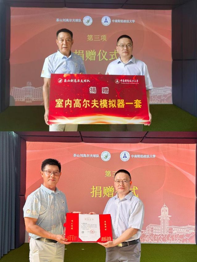 (通讯员 李泳)6月17日下午,一场情系母校发展的室内高尔夫模拟器捐赠仪式在南湖体育中心149室隆重举行。捐赠方代表、原校体育部教师宋书刚,长江探索号董事长郭才明,武汉大洋金城影视公司副总裁、茶山刘高尔夫球队队长叶林,以及高尔夫湖北运营公司杨总一行专程回校。校方出席代表包括校友工作与社会合作部部长、教育发展基金会秘书长笪宁,体育部主任肖杰、体育部党委书记傅小勇。双方齐聚一堂,共同见证这一凝聚校友情谊、助力校园体育发展的善举。此次活动由傅小勇主持。