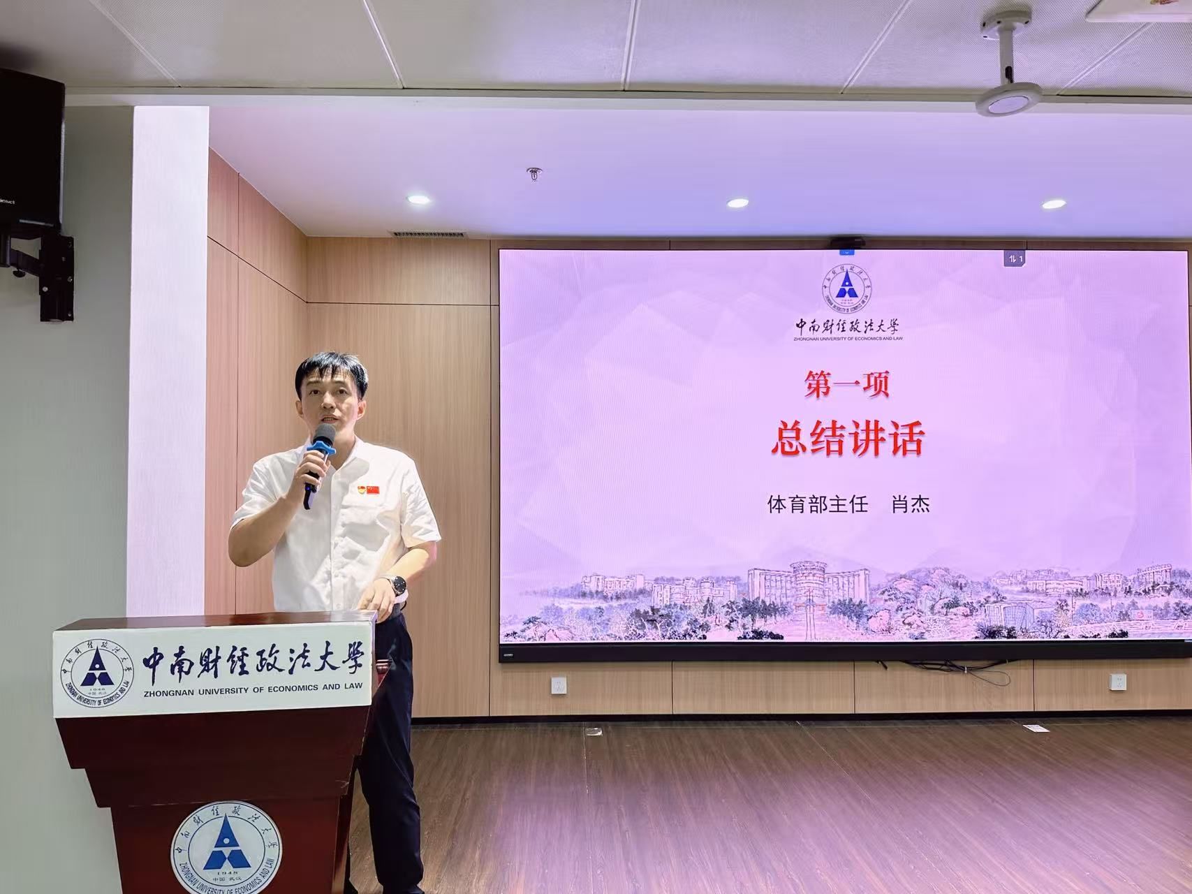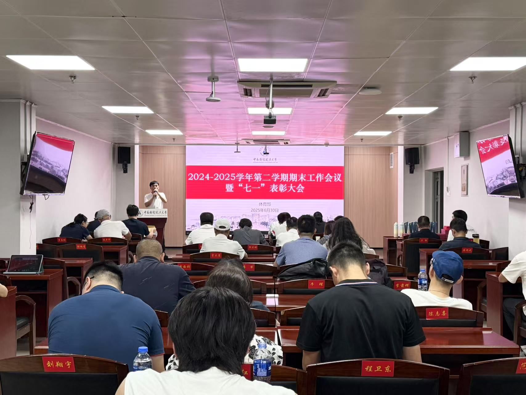 会议首先由体育部主任肖杰作学期工作总结,全面回顾半年来在党建引领、教学改革、竞赛组织、队伍建设、场馆管理等方面取得的成果,并对下半年重点工作进行部署。