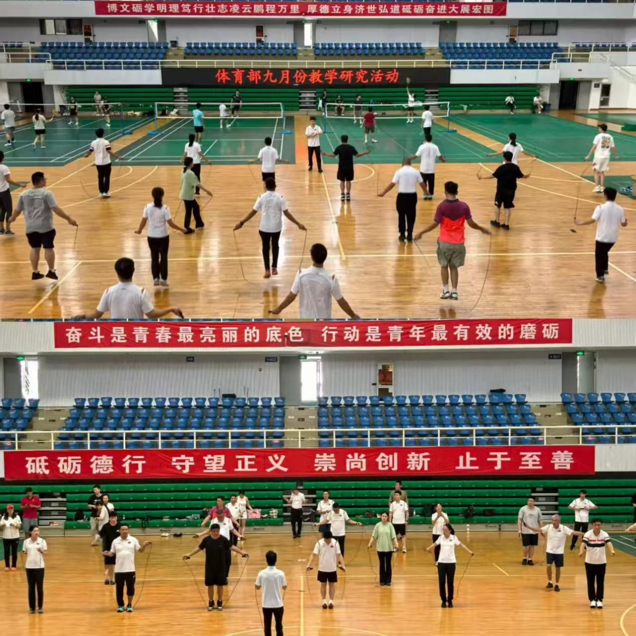 (通讯员 姚亚杰 摄影 郭志鹏)为深化体育教学改革,提升教学质量与教师专业素养,促进教师间的交流与合作,9月11日下午,体育部在艺体中心羽毛球场开展九月集体备课活动,全体教师参与。活动由跳绳教学方法学习、身体素质练习及教学比赛三部分组成,旨在通过实践交流推动体育教学工作的规范化、科学化与创新化发展。
