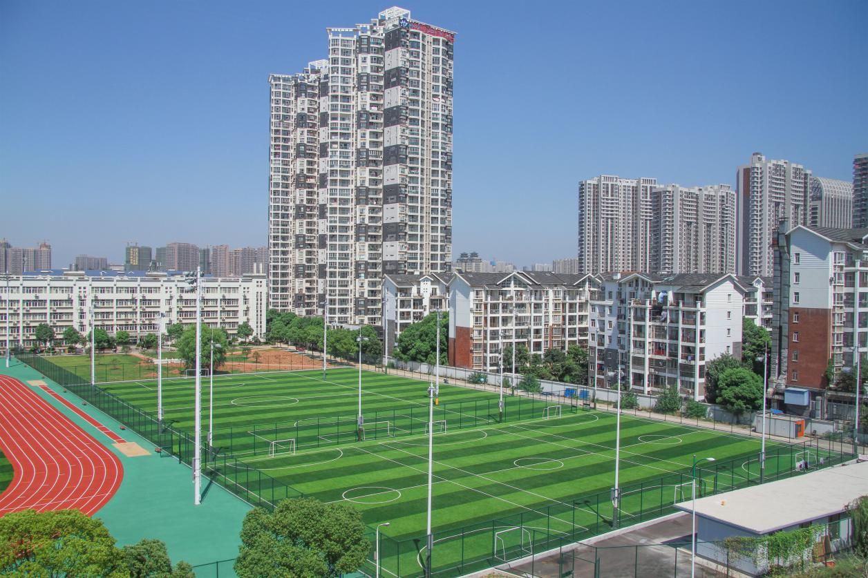 值得一提的是,为了保障我校师生员工的身体健康,西区足球运动场跑道采用的是水性(无毒)新型材料,是湖北省第一片采用新材料的运动场,真正做到“健康锻炼,幸福一生”。