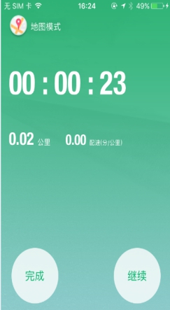 开始跑步之后,地图模式下会画出你所跑步的路线