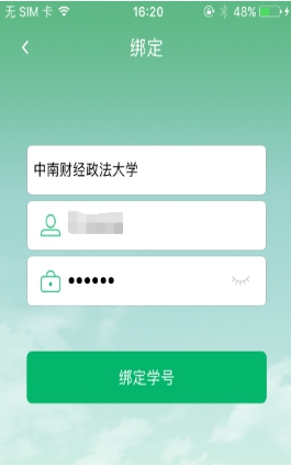 第一次运行需要绑定你的学号,请输入高校体育管理系统的学号和密码(账号是本人学号,原始密码是888888,如有更改密码的同学请自行输入更改后密码。)