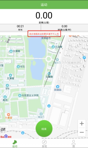 开始跑步之后,会画出你所跑步的路线,如果达到要求了会提醒同学们可以上传的。