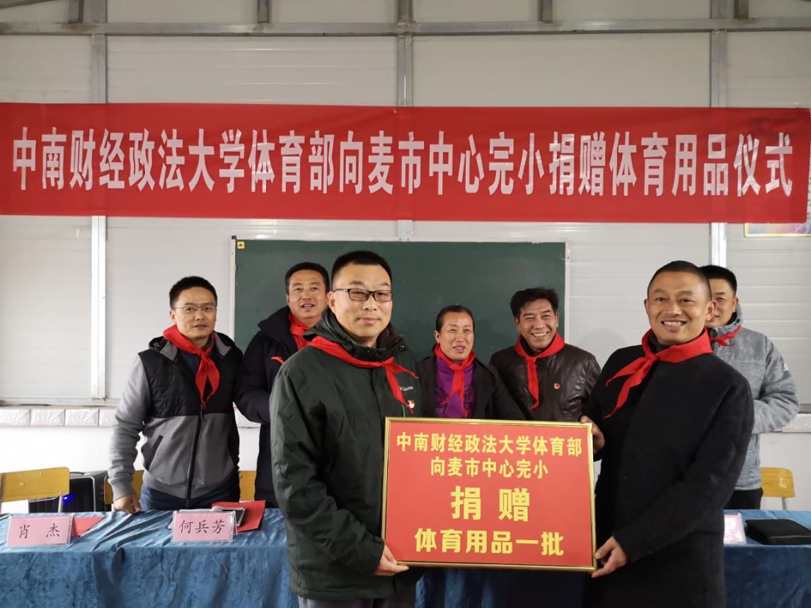 (通讯员 张可)2019年11月26日,体育部党委组织各党支部赴通城麦市镇红石村开展“不忘初心、牢记使命”主题教育志愿扶贫及参观学习活动。此前,体育部党委会议决定,结合学校11月份支部主题党日活动要求,开展扶贫活动,向我校定点扶贫的红石村捐赠体育器材,助力“健康脱贫”。在我校驻点扶贫工作队同志的沟通帮助下,体育部精心准备了一批学生喜欢热爱、学校紧缺的体育教学器材,向麦市镇中心完小完成捐赠。