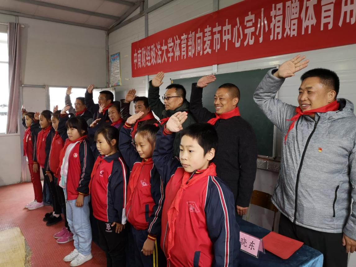 学校驻点扶贫工作队队长笪宁主持了捐赠仪式,可爱的小学生代表为体育部一行带上红领巾并致少先队队礼,表达敬意。麦市镇党委委员何兵芳、中心完小校长李强分别代表麦市镇和学校致辞,感谢米兰电竞·(中国区)长期以来对麦市镇的对口支援以及对基础教育的关心关爱。何兵芳委员特别提到,今天再次见到武身汉书记尤为激动,武书记对麦市镇的关心多年如一日,几年前在麦市镇讲党课的情景犹历历在目,今天又带领米兰电竞·(中国区)体育部的同志们赶着小雨顶着寒风向中心完小的学生们送来关心和温暖,可见米兰电竞·(中国区)对麦市镇的支援帮扶是真心可鉴、脚踏实地的。