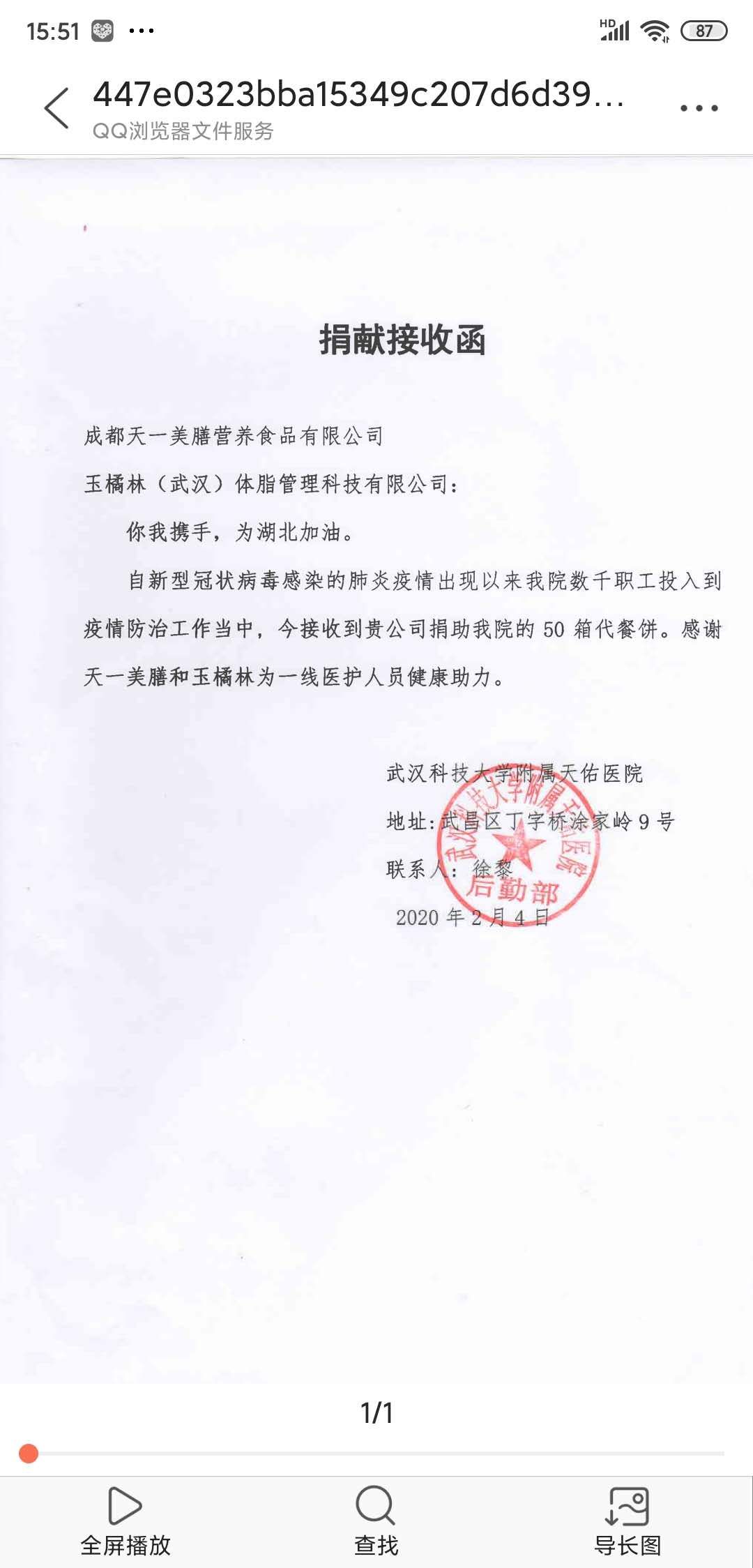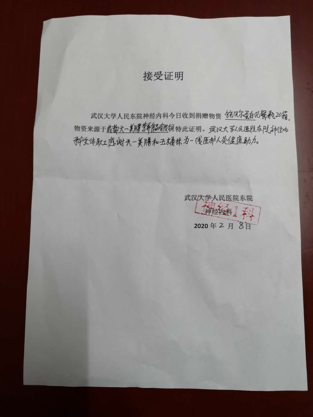 一、1月30日他携手法学九四校友刘大为联合成都天一美膳公司为华科大同济医院、武汉大学附属一医院、省中医院、武科大天佑医院、天门市中医院等一线医护人员以及东湖高新分局、武汉守护医者装卸志愿运输队等社会团体捐赠高能量饼干的工作(价值100多万)。