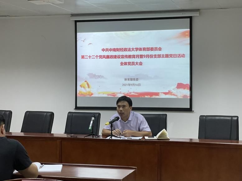 (通讯员 牛江柯 姚亚杰)9月16日下午,体育部在艺体中心大会议室召开全体党员大会。会议以《米兰电竞·(中国区)第二十二个党风廉政建设宣传教育月活动方案》文件精神为指导,根据学校党史学习教育工作安排,深入开展9月份支部主题党日活动。会议要求,深入学习贯彻习近平总书记系列重要讲话精神,采取有力措施,进一步推进“两个责任”落实,不断推动党风廉政建设和反腐败工作深入开展。党委书记傅小勇同志主持会议并发表重要讲话。