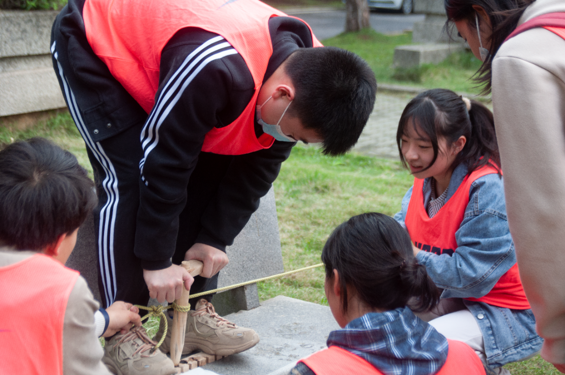 共计两小时的体验赛在同学们的奔跑和欢笑中拉近尾声。下午3点53分,“欢乐斗地主”队率先完成所有项目,抵达终点,其他队伍均陆续完赛。大家稍作休整后,在老师们的带领下前往南湖绿道搭建帐篷,在《我和我的祖国》的美妙歌声中开启下半场精彩——灯火晚会和露营活动。