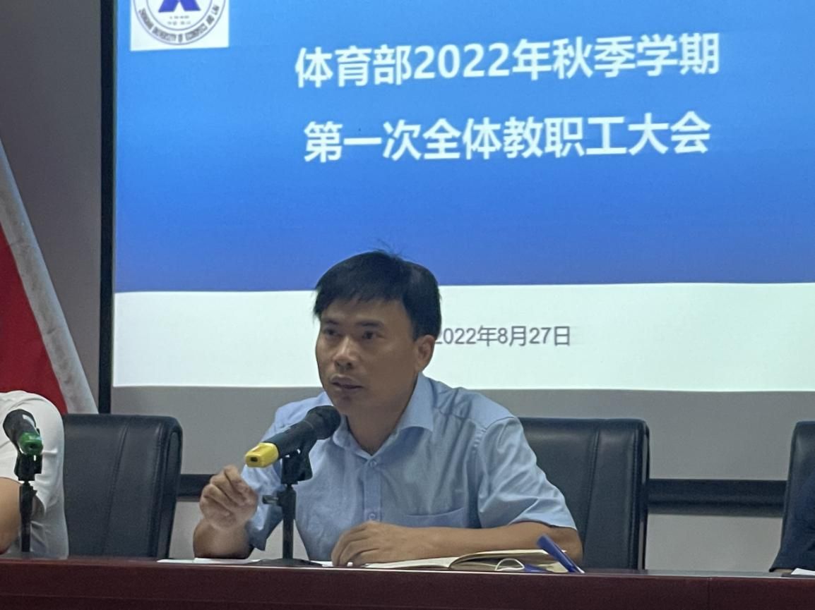 黄宏远副主任详细汇报了体育部2022年秋季学期教学工作计划,明确了新学期教学工作的高标准和严要求。人才培养工作是体育部的核心工作,必须坚持不懈地完善人才培养体系,推进课堂教学改革,推动体育教师团队成长和专业化发展。从宏观上把控,从细微处着手,多关心学生、多爱护学生,更好地促进学生体质提升、身心健康。