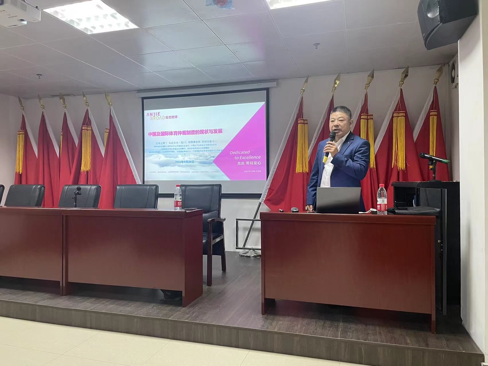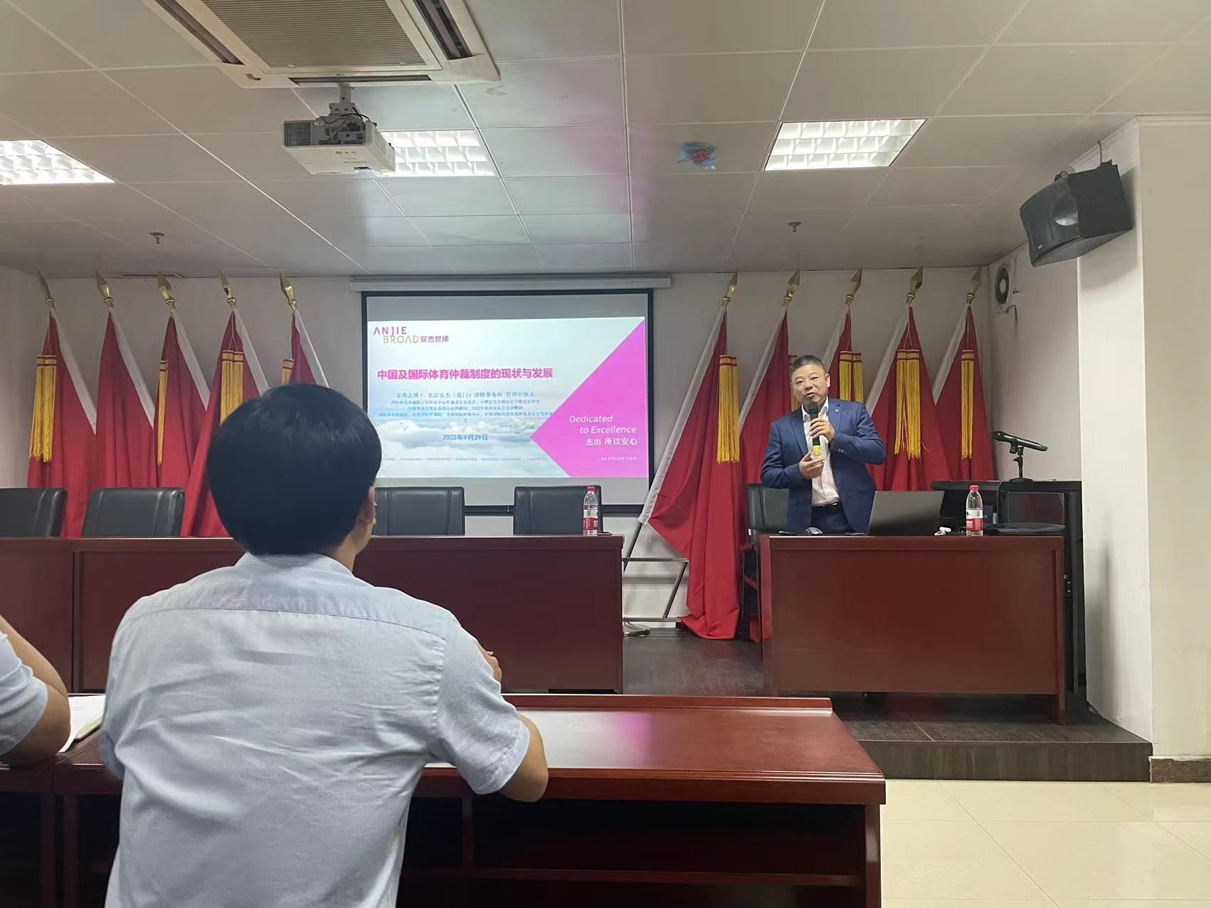(通讯员 姚亚杰)为深入学习贯彻习近平法治思想,认真贯彻落实习近平总书记关于体育强国建设的重要论述和指示批示精神,增进体育教师对实施修改后的《中华人民共和国体育法》的了解,9月29日上午,体育部组织全体教师在艺体中心开展“中国及国际体育仲裁制度的现状与发展”专题讲座。本次讲座邀请国际体育仲裁院上海听证中心咨询委员会委员、中国法学会体育法学研究会理事、中国奥委会奥运备战办法律顾问、国际体育仲裁院仲裁员安寿志博士进行授课,体育部全体教师参加学习。