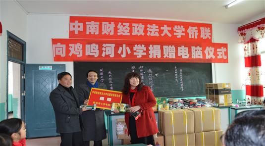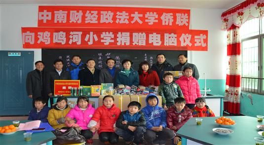 新年伊始,1月9日,我校归国华侨联合会走进英山县方家咀乡鸡鸣河小学,开展下乡支教及电脑、学习用品的捐赠活动。为积极落实“侨心工程”活动,践行中国梦,在校侨联主席梁小华同志、副主席赵楠同志等大力筹备和联络动员下,圆满地完成了此次支教及捐赠活动。此次活动得到湖北省侨联的大力支持,省侨联刘文华副主席、联络部欧梁峰部长及张震主任也应邀出席了此次活动。