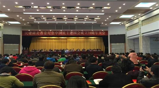 民建湖北省委12月3日在东湖宾馆梅岭礼堂召开纪念中国民主建国会成立70周年大会。中共湖北省委常委、省委统战部部长梁惠玲出席会议并讲话;省工商联主席杨玉华代表兄弟民主党派、工商联致贺词;省政协副主席、民建省委主委、省科技厅厅长郭跃进在会上作报告。