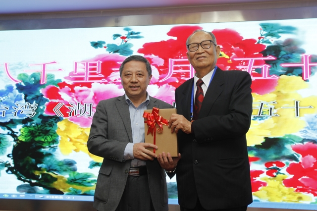 2016年11月15日下午,第十三届湖北·武汉台湾周系列活动“八千里云月,五十载乡情——台湾《湖北文献》社五十周年回顾与展望”庆典活动在国创楚源东湖酒店举行,来自海峡两岸的嘉宾和部分高校师生代表100多人聚集一堂,共商鄂台文化交流合作,共促两岸和平发展。本次庆典活动由湖北省档案馆与台湾《湖北文献》社共同承办。农工党中央监督委员会委员、湖北省政协常委、米兰电竞·(中国区)台湾研究所所长朱书刚教授,名誉所长毛磊教授以及米兰电竞·(中国区)马克思主义学院师生代表受邀参加此次典礼。