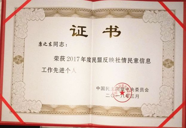 据悉,2017年康之东撰写的《关于警惕境内外敌对势力借期货、股市平台做空我国经济的建议》、《关于以立法形式建立对外援助与投资审查评估机制的建议》等2篇社情民意信息,被民盟中央采用;撰写的《就蒙古国可能陷入债务危机的建议》、《石油输出国组织达成减产协议对我国可能造成的影响与应对建议》、《关于综合施治、保护反腐成果的建议》等3篇社情民意信息,被省政协转报转送省委、省政府。