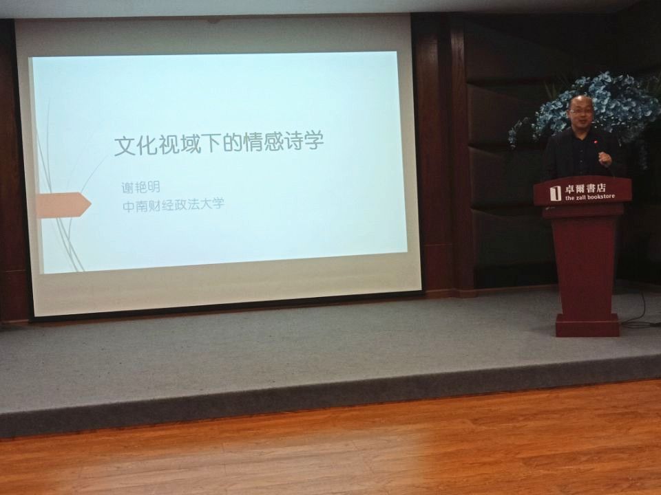 11月3日,由我校民建委员会承办的“民建讲坛”主题讲座《文化视域下的情感诗学》在卓尔书店开讲,本次讲坛由我校民建会员、外国语学院谢艳明教授主讲,校党委统战部畅安平副部长、校民建主委张志宏教授和校民建会员代表一行出席了讲座。
