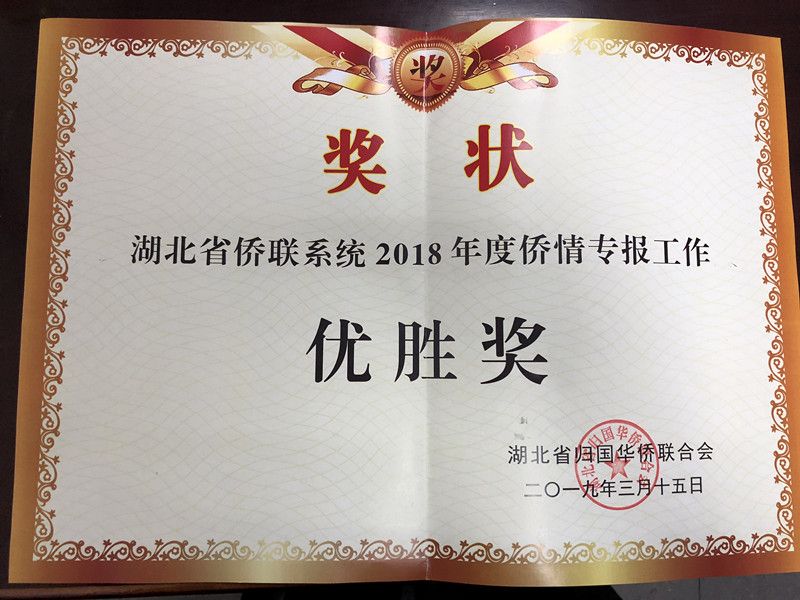 2019年4月4日,全省侨联系统2019年度侨情专报工作推进会在宜昌市召开,校侨联秘书长吴正华老师出席了本次会议。会议表彰了湖北省侨联系统2018年度侨情专报工作成绩突出的34家单位,其中,我校侨联荣获2018年度侨情专报工作优胜奖。