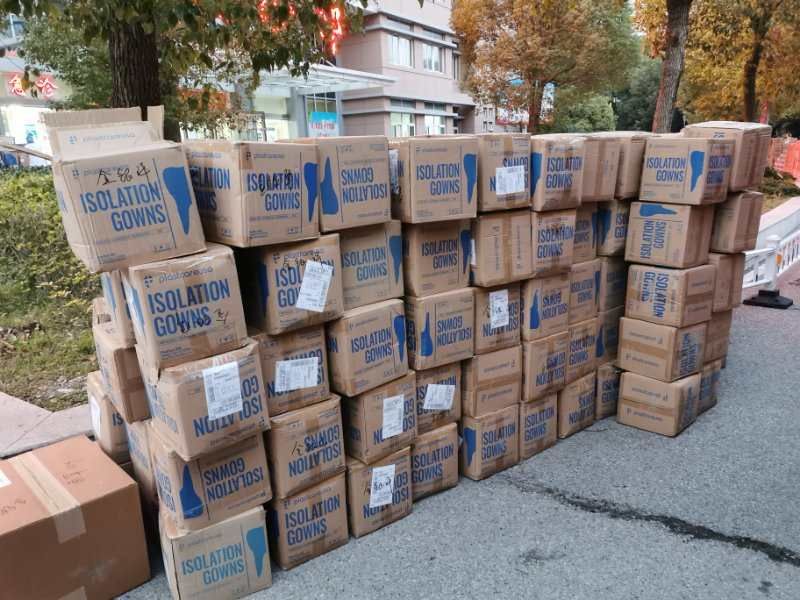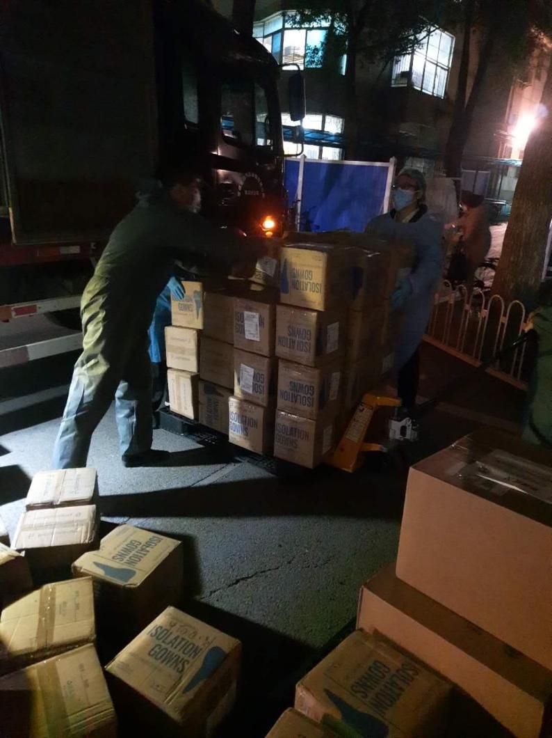 在此过程中我们遇到的最大的困难是南航纽约到广州的直航即将停航了,而我们海外采购的物资还有一些手续没有办完,如果流程卡壳,意味着我们之前所做的努力都有可能付诸东流。于是我们动员一切可以动员的力量赶上了停航前最后一班航班。当时,我们预定的顺丰物流告知我们红十字会无法继续为我们的物资盖章免税了。我紧急告知了我所在的九三学社领导,并迅速得到了九三学社省委的帮助。之后,我对接上了湖北省红十字会境外物资组工作人员。红会工作人员全程在线为我们指导清关文件申报,在第一时间帮我们办理了清关手续。当地时间2月15日上午11点,满载着1480公斤医疗物资的南航CZ300货机冲上云霄,从纽约飞往广州。我们在美国采购的第一批共计325箱价值29983美元的医用隔离服、口罩、防护面屏、护目镜等物资已于2月21日送到我们定向捐助的金银潭、同济和金银潭医院。第二批在英国采购的价值6900英镑的N95口罩、医用手套、防护面屏、护目镜已于2月22日从伦敦空运到青岛,并于25日和26日分别送达武汉市中心医院和孝感云梦中医院。我们第三批价值9400多美元的N95口罩、医用手套、护目镜等物资也即将启航,将用于支援武汉、恩施、黄石等地医疗机构和疫情严重的社区。